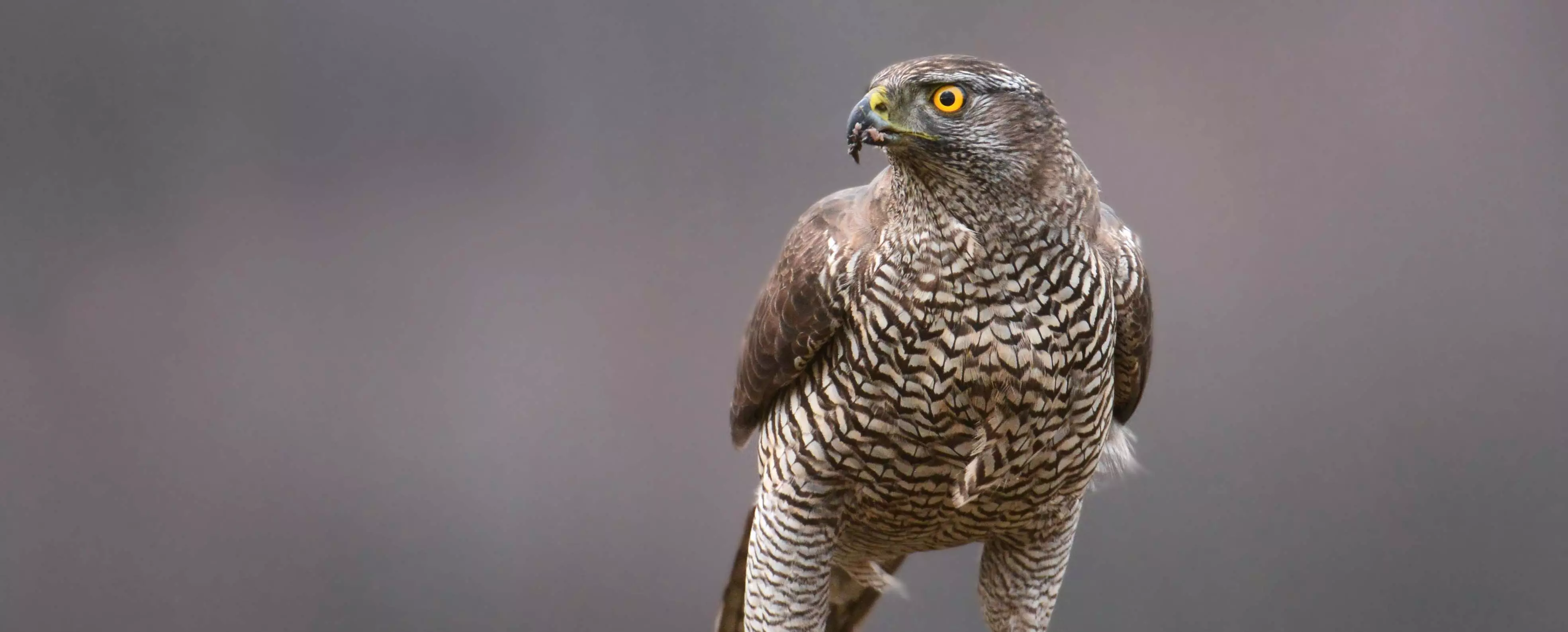 Goshawk are well-known as feisty and difficult falconers’ birds and their scientific name gentilis derives from the fact that traditionally only members of the gentry or nobility were allowed to carry one. Goshawks are the largest of the accipiter/hawk group of birds of prey and are found across much of the northern Hemisphere. In much of their range they are one of the top predators, but share their habitat with other, smaller, accipiters such as Sparrowhawk in the UK and Sharp-shinned and Cooper’s Hawks in North America.